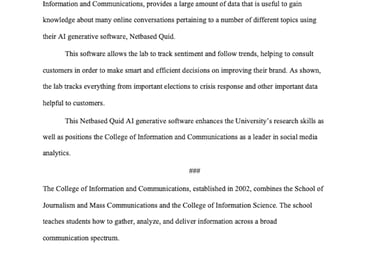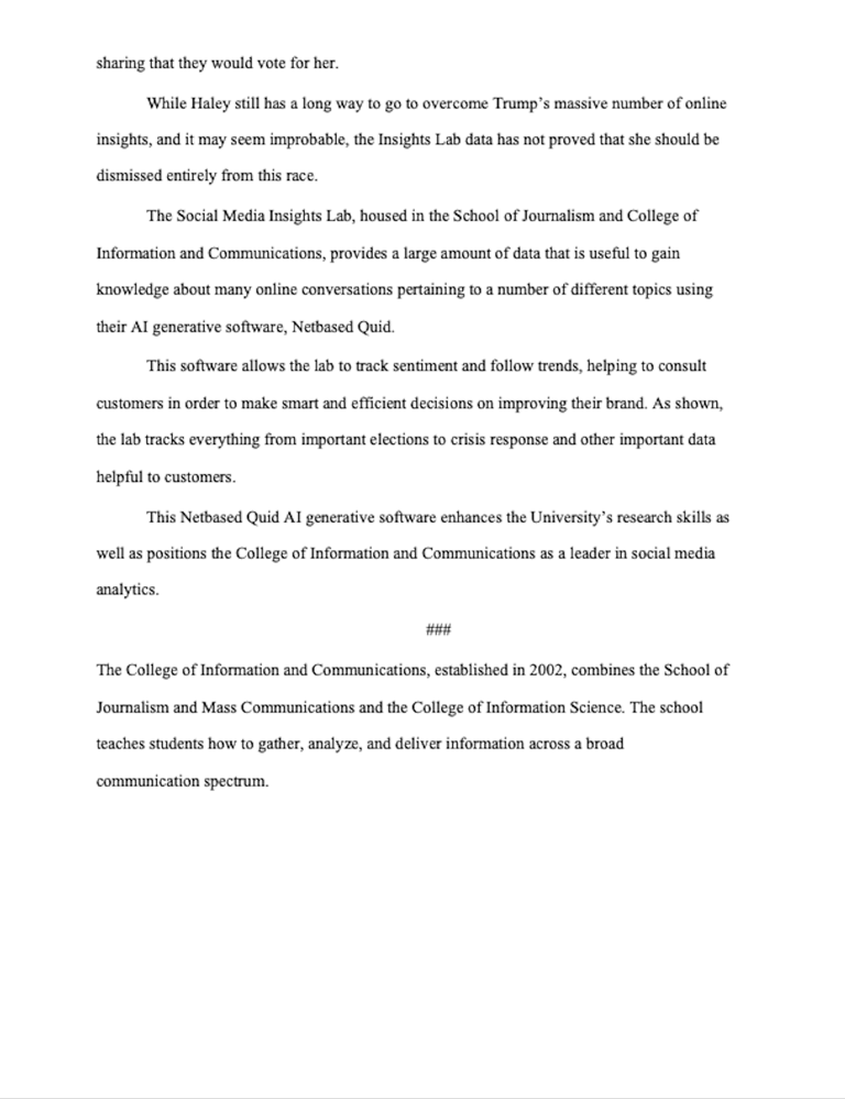 By leveraging Netbase Quid’s analytics, the lab has examined over 808,000 mentions since January 1, 2023, revealing key findings about public perception and online engagement. This press release effectively communicates the lab’s research capabilities, reinforcing the College of Information and Communications’ position as a leader in social media analytics and digital strategy.